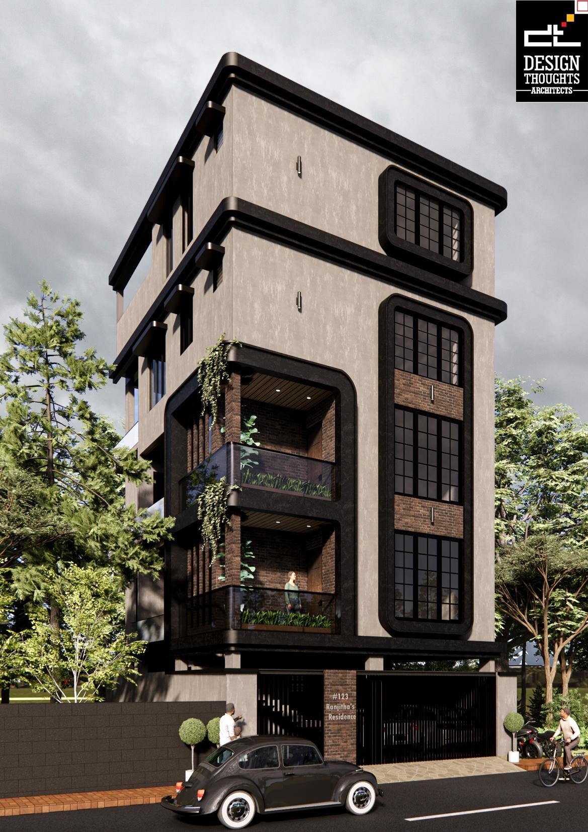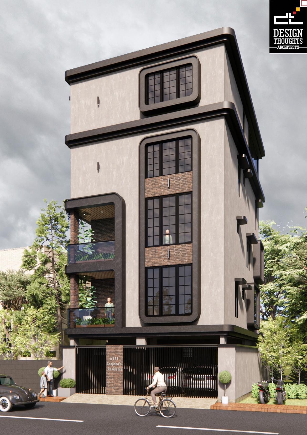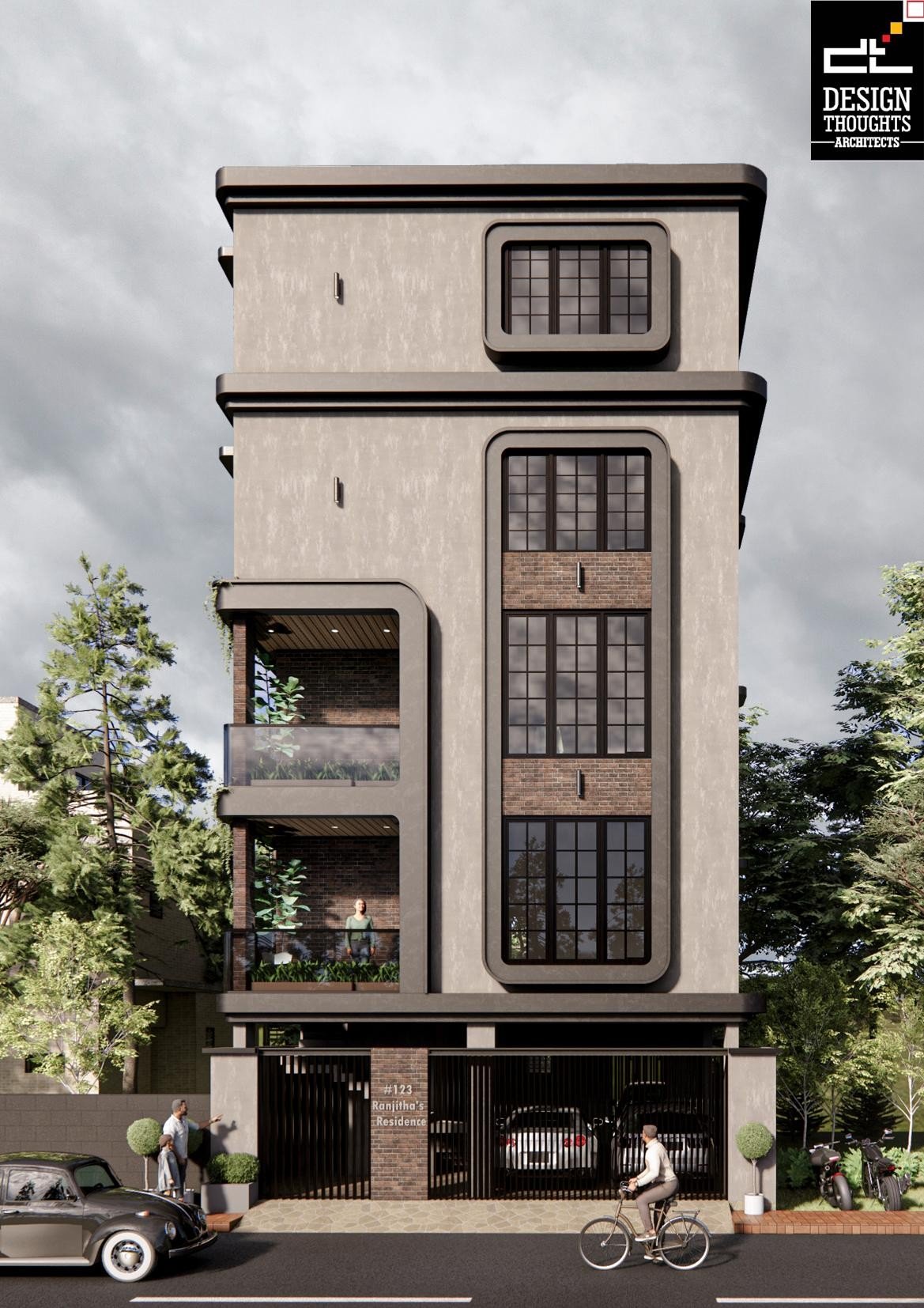 Final renders of a contemporary house design with a G+4 plan
