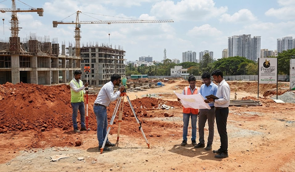 Engineers conducting site survey and soil tests